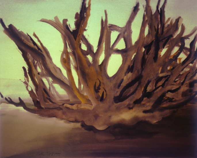 Wurzel am Ufer, Aquarell, 1988, 34/44 cm
